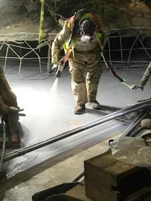 Challenge: A protective coating to be applied to a water feature ride which needed to be flexible and abrasion resistant. Along its course, the ride plunges down two waterfalls, navigates three levels, and passes through two buildings. Its overall square footage covers 112,000 square feet. Fast return to service is critical for amusement park rides. Down time is costly and takes away from the experience of the patrons.