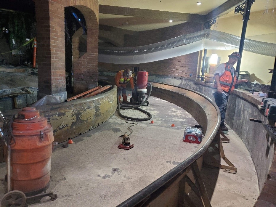 Solution: Johnson & Jennings selected Freedom Chemical’s Guardian-WF to provide long lasting protection for the water feature. The combination of the products used provided excellent thermal stability; abrasion and chemical resistance; fast return to service; and durable installations with no odor, which was ideal for a water park. For example, Freedom Chemical’s FreedomTuff 6160 is a two component 100% solids epoxy primer designed to treat new and existing concrete, masonry and wood. Freedom Chemical’s FreedomTuff 2216 is a fast setting, rapid curing, two-component modified aromatic spray polyurea, used as a general-purpose protective coating, that is flexible, abrasion, and impact resistant. FreedomTuff 4295 is a two-component hand applied hybrid aliphatic elastomeric polyurea topcoat used as a protective/waterproof coating for interior/exterior concrete, wood, and metal surfaces.