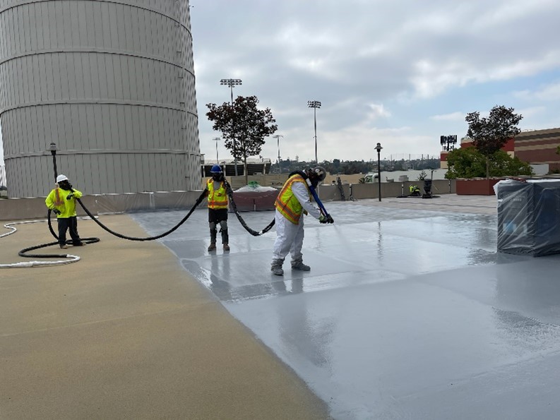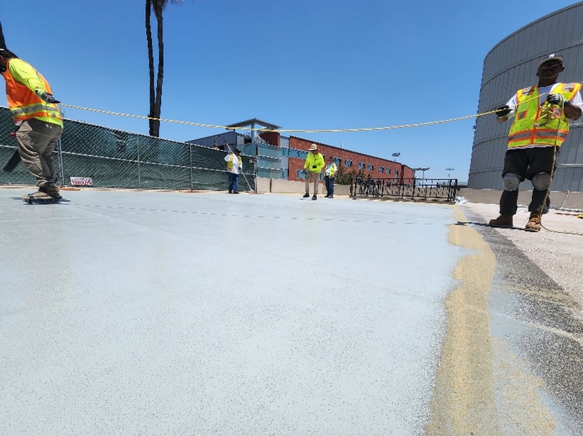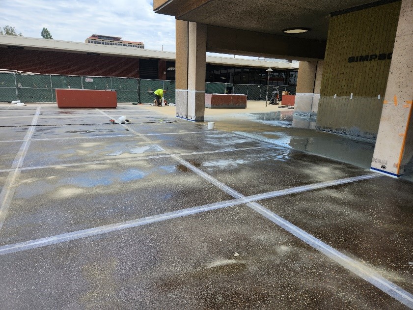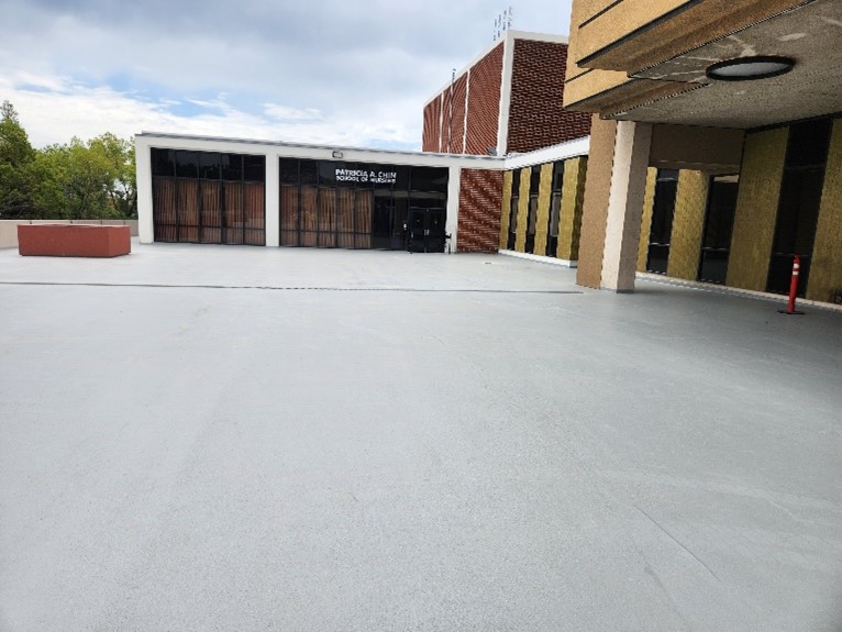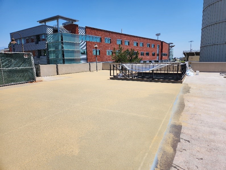 Challenge: The 70,000 square foot parking area and rooftop for the Floyd R. Simpson Memorial Tower on the campus of Califonia State University was in need of a protective coating with waterproofing.
