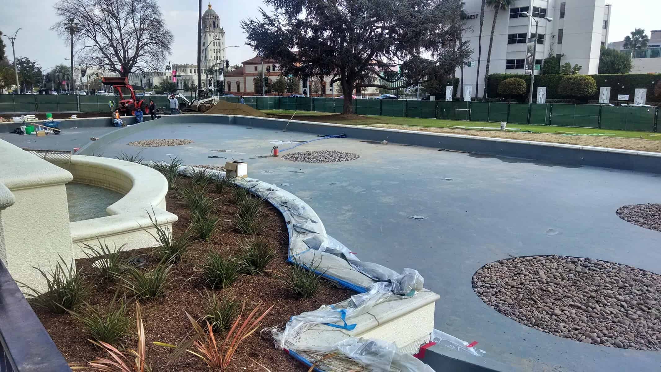 Project description: In 2014 the city of beverly hills, california renovated their water feature. They wanted to expand the size and upgrade the plant life and vegetation in the water feature. They were looking for a durable liner that could hold up to plant growth as well as hold up to the ground movement in the area.
