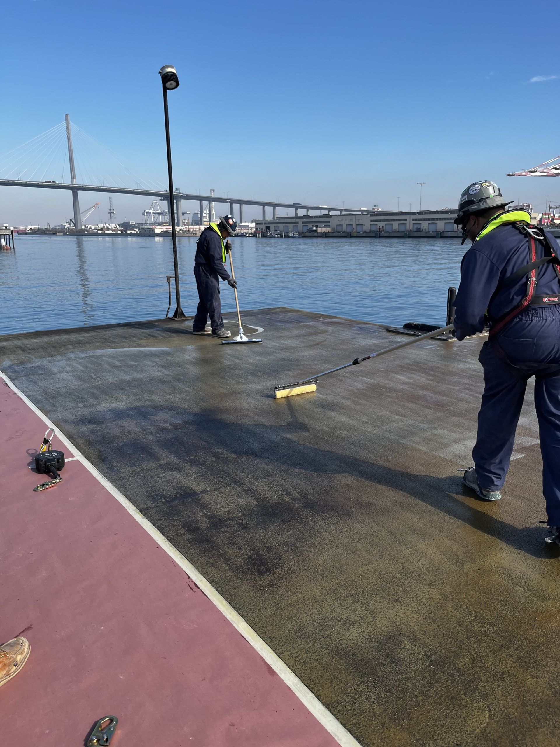 This area is continuously exposed to marine conditions, mechanical abrasion, oils, fuels, and saltwater, all of which accelerate surface degradation.