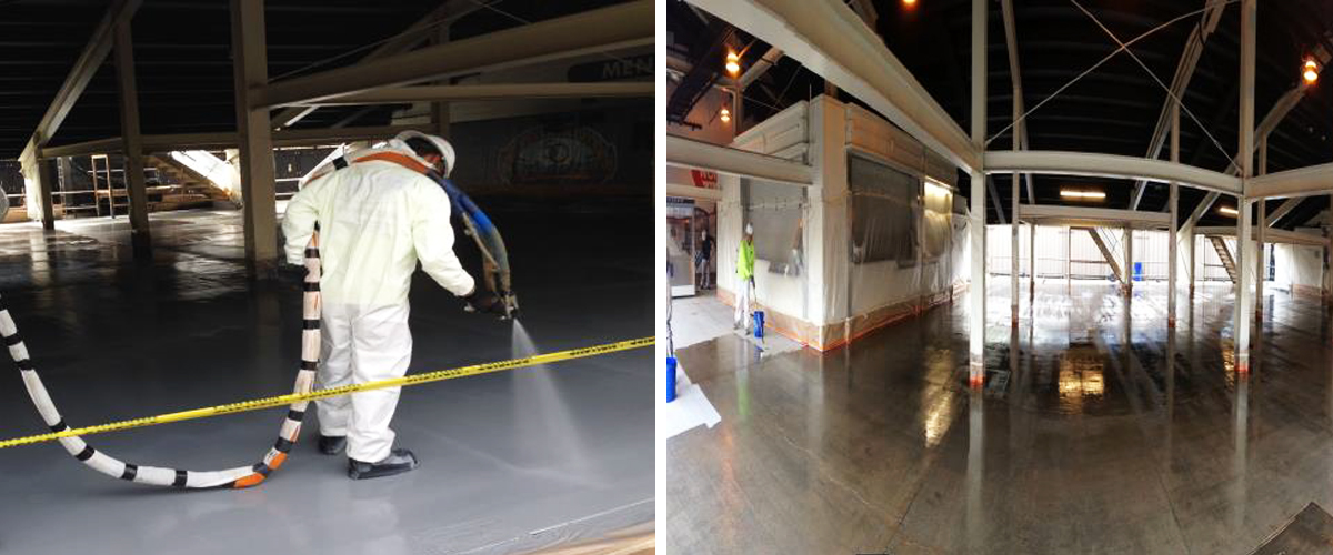 Results: the polyurea system was chosen due to its durability, seamless application, fast turnaround time, non-skid properties, aesthetics and waterproofing properties. The end results was a flooring system that meet all the customers expectations. They were able to complete the job within 3 days and turn over to the time warner people to set up their booth in time for opening day pre-season 2014.