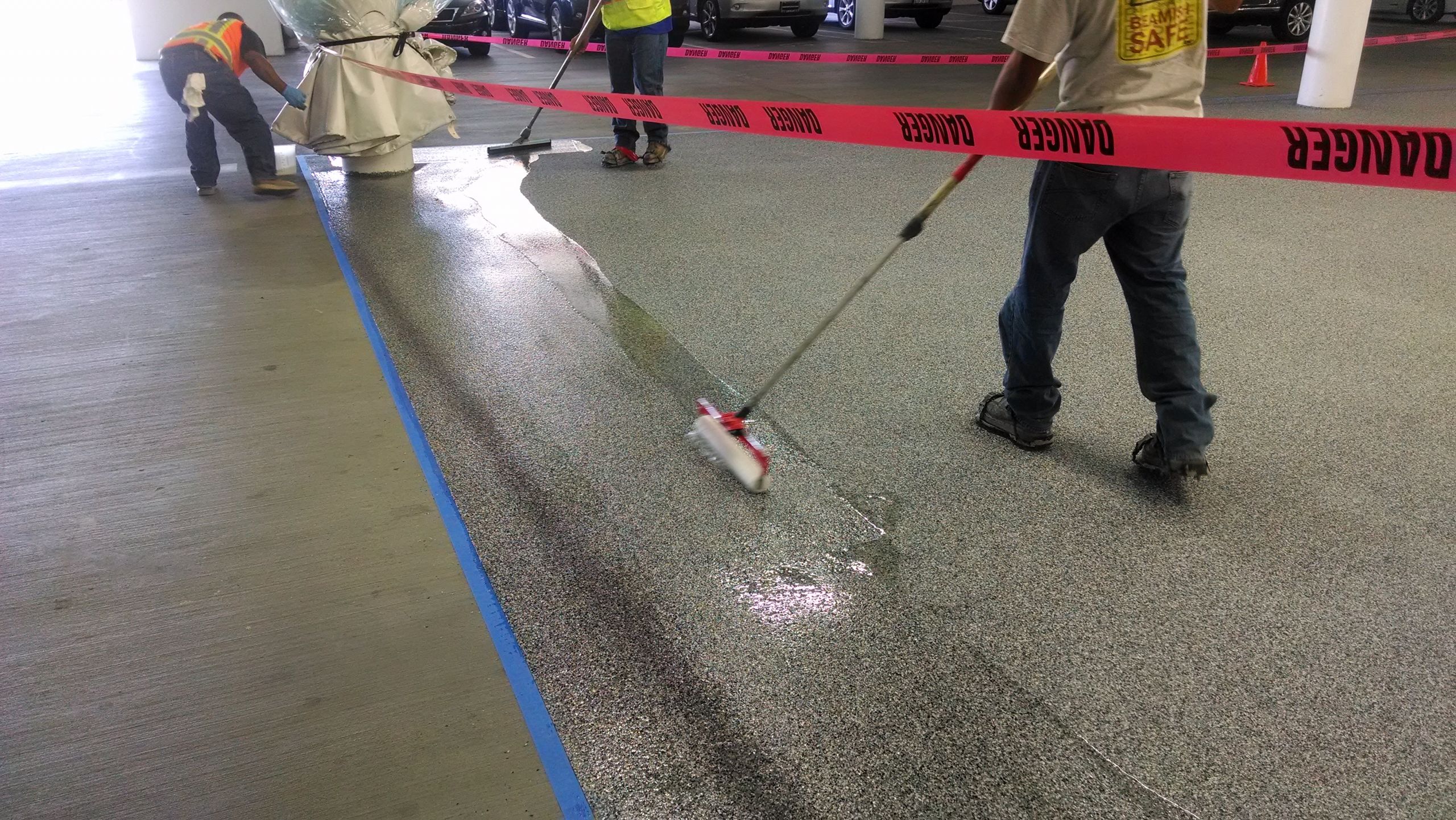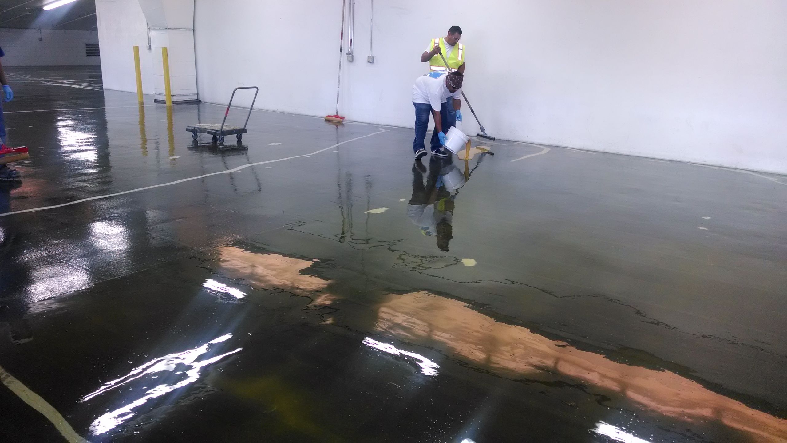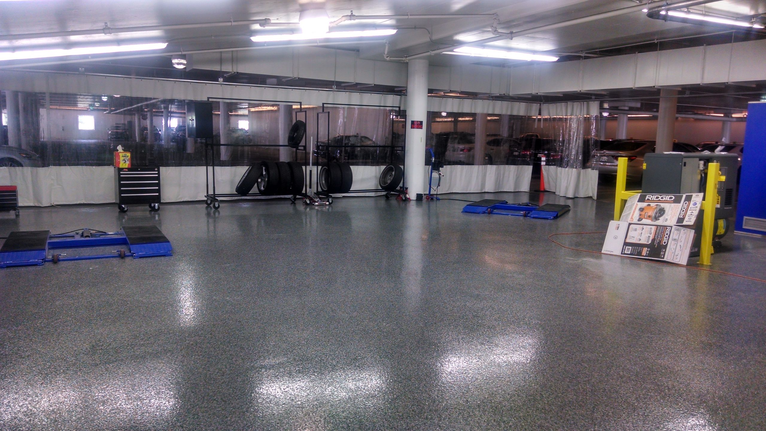 Project description: In 2014 Newport Lexus was installing a 7,000 sq.ft. dent and repair garage at their facility in Newport Beach California. This was to be a “state of the art” dent and repair facility. It was positioned directly over the showroom floor so waterproofing the area was going to be critical. In addition to waterproofing given the high profile client and location aesthetics would be as important.