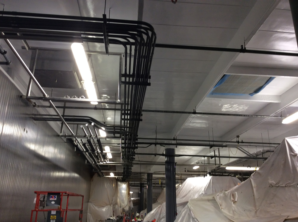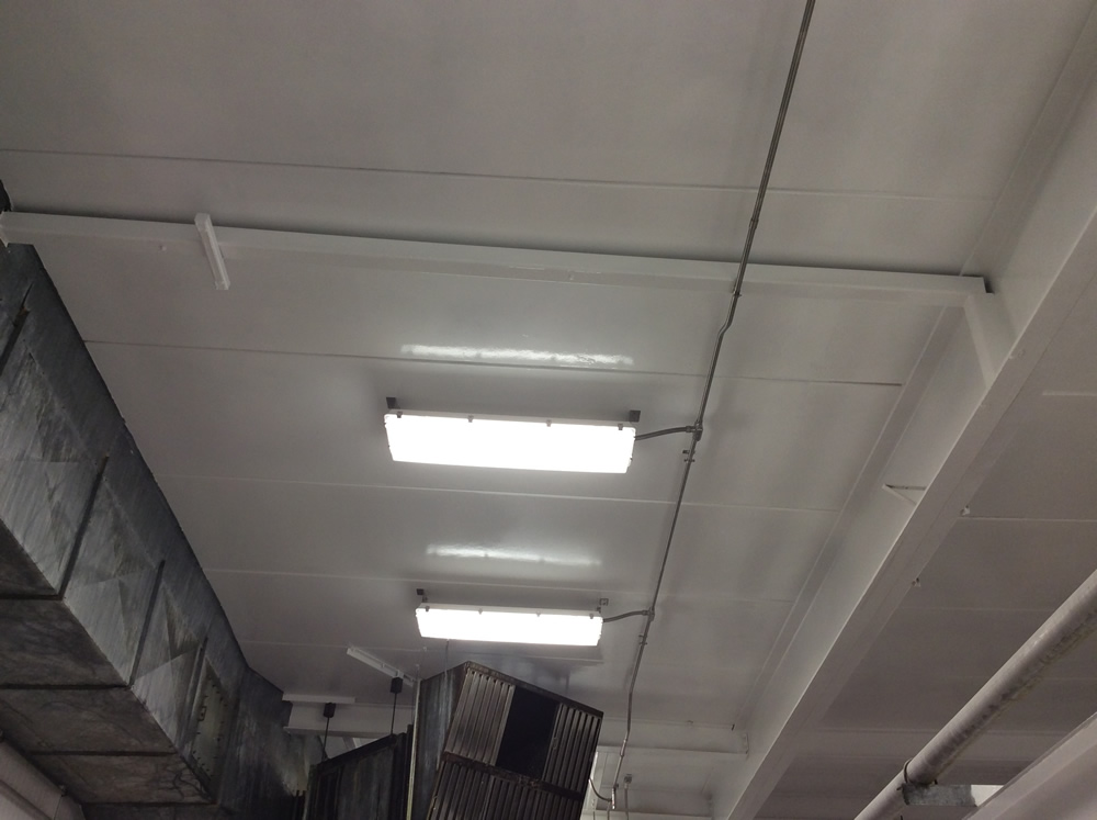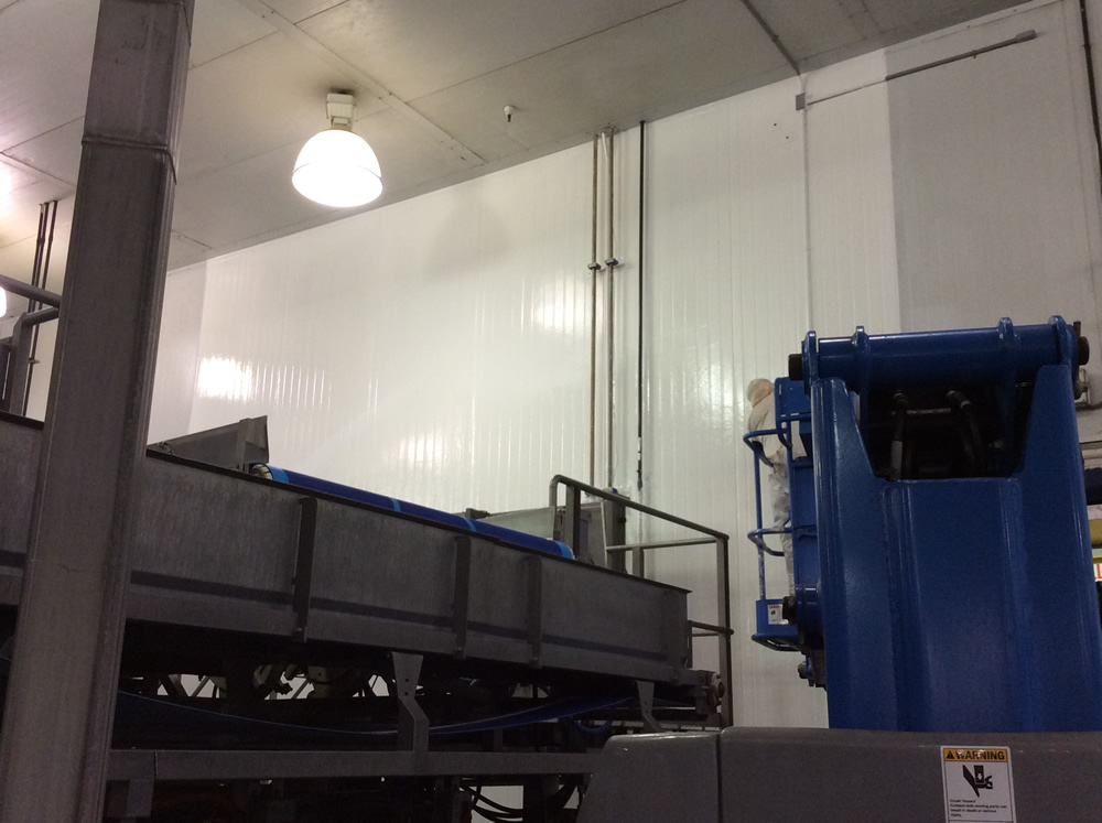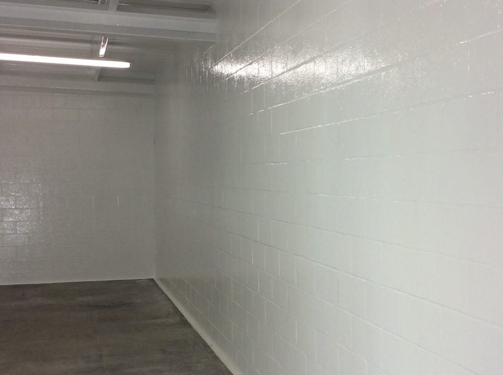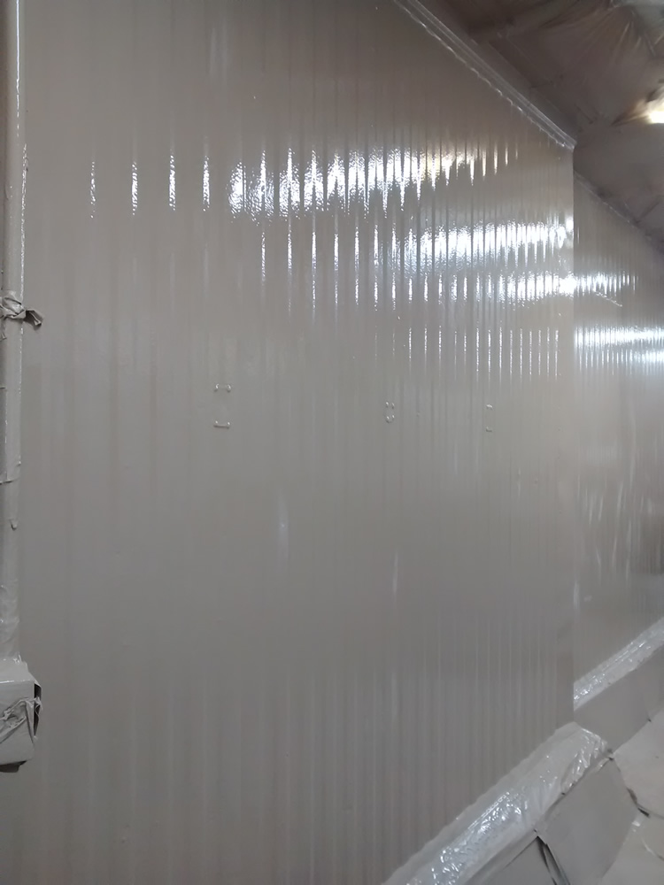 FREEDOMTUFF® GUARDIAN-FB™ is a proprietary system for creating solid color, seamless enclosures for cold storage, containment, ceilings, walls and floors specifically formulated to meet the demands of Food and Beverage environments. The system utilizes a fast set odorless polyurea which cures in